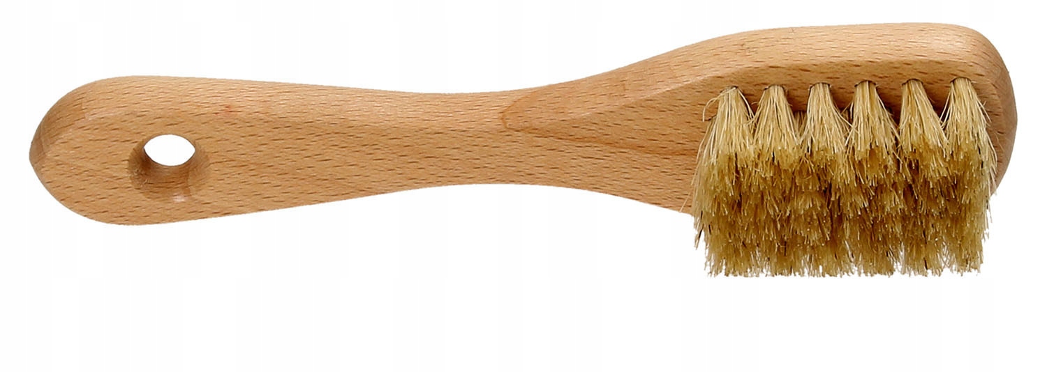 Szczotka do nakładania pasty do obuwia z naturalnym włosiem, wykonana z naturalnego drewna.